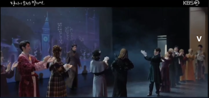 가장 우측에 화살표 보이시나요. 저게 접니다 ㅋㅋㅋ '당신이 소원을 말하면'이라는 드라마인데, 뮤지컬 씬에서 뮤지컬 배우로 연기를 했다. 아침 일찍 가서 분장하고, 드레스 입고, 메이크업을 받았다. 다른 사람한테 처음으로 메이크업을 받았는데, 진짜 연예인 된 기분이었다. 기분이 참 묘했다.