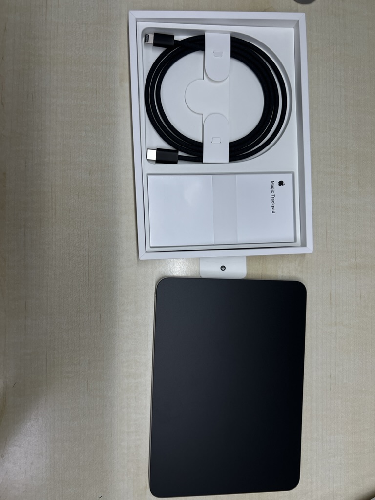 사실 처음에는, Magic Trackpad라고 쓰여있어서 '아.. 내가 사려던 건 트랙패드 2였는데, 1을 산건가?' 싶어서 뒤에 있는 제품 번호를 구글에 검색해 보았다. 아니나 다를까, 2의 제품 번호였다!! 곧장 박스를 뜯어보았다 ㅎㅎ.