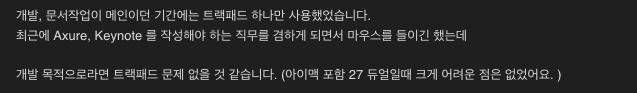기존 마우스(MX Master 3S)가 무거워서 많이들 사용하려는 MX anywhere 3S를 구매하려고 했다. 그런데, 검색을 하다 보니까 개발자가 가장 많이 쓰는 마우스(?) 1순위가 트랙패드라는 것이다.