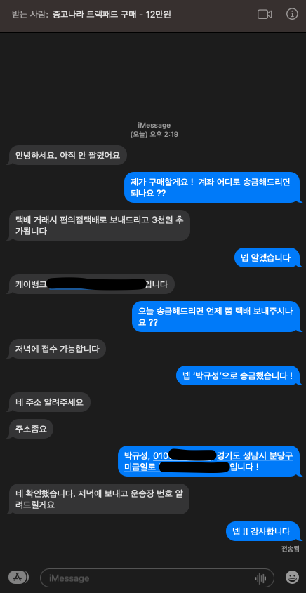단순히 판매자가 메시지로 거래하길 꺼리는 경우도 있겠지만 보통의 경우는 신뢰도를 위해 전화번호 메시지를 통해 거래합니다.