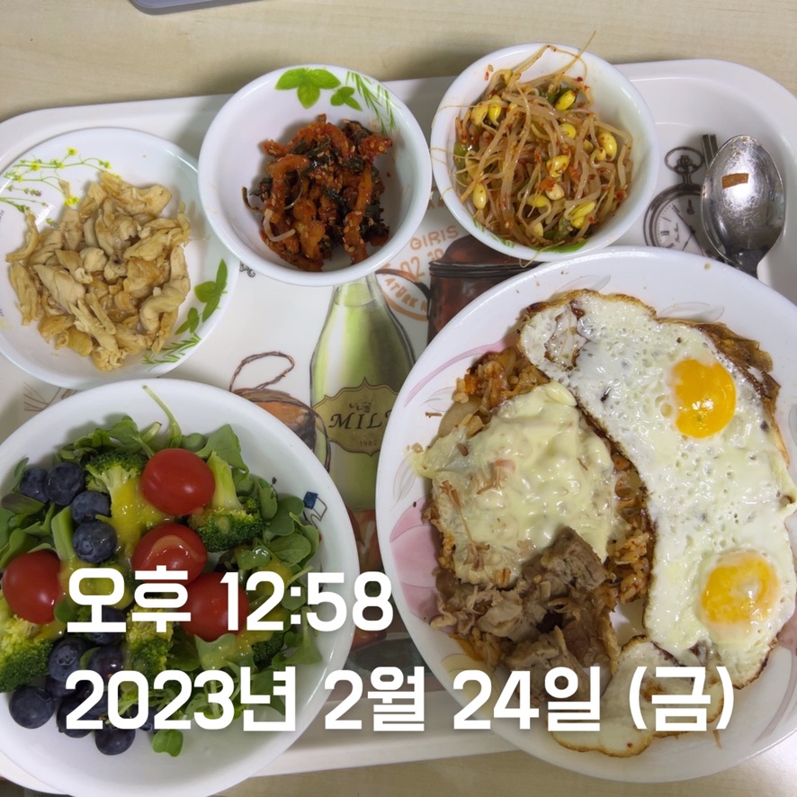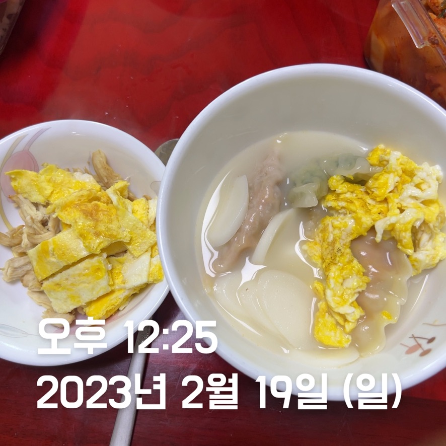 | 점심 | 떡국 + 계란 2개 + 닭가슴살 | 김치볶음밥 + 계란 2개 + 닭가슴살 | 김치볶음밥 + 계란 2 + 닭가슴살 | 김치볶음밥 + 계란 2 + 닭가슴살 | 김치볶음밥 + 계란 2 + 닭가슴살 + 코다리 | 김치볶음밥 + 계란 2 + 닭가슴살 + 수육 | 생선까스 + 계란 2 + 닭가슴살 |