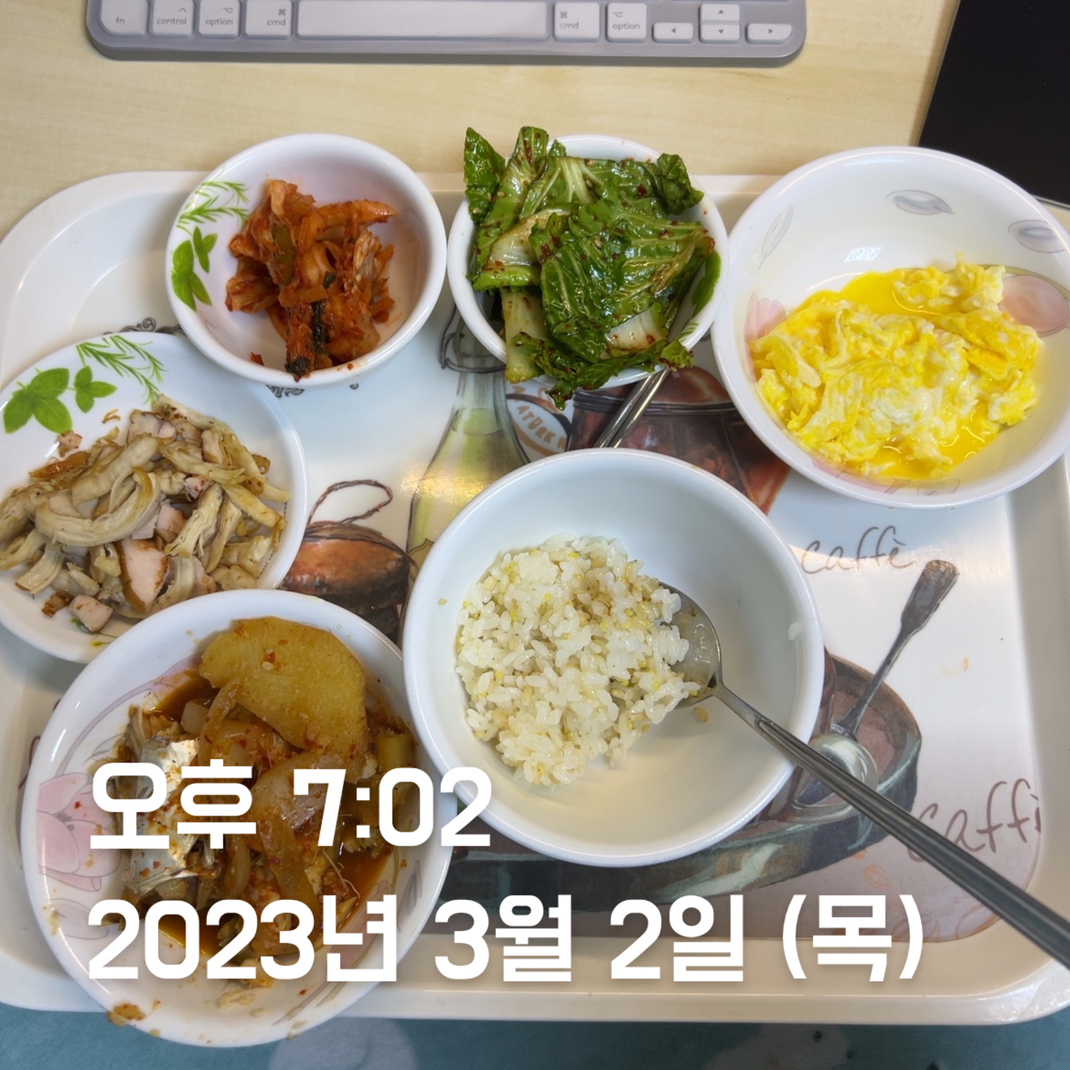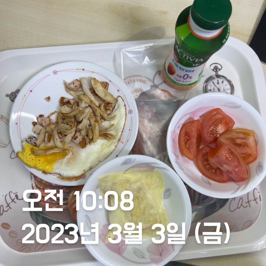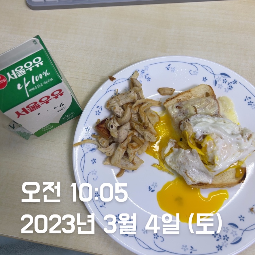 - 스크램블 에그 + 닭가슴살을 했는데 계란이 너무 덜 익어서 내가 계란 물을 마시는 건가, 닭가슴살을 먹는 건가 구분이 안 갔다. 다음부터는 합치지 말고, 각각 잘 익혀 먹도록 하자.