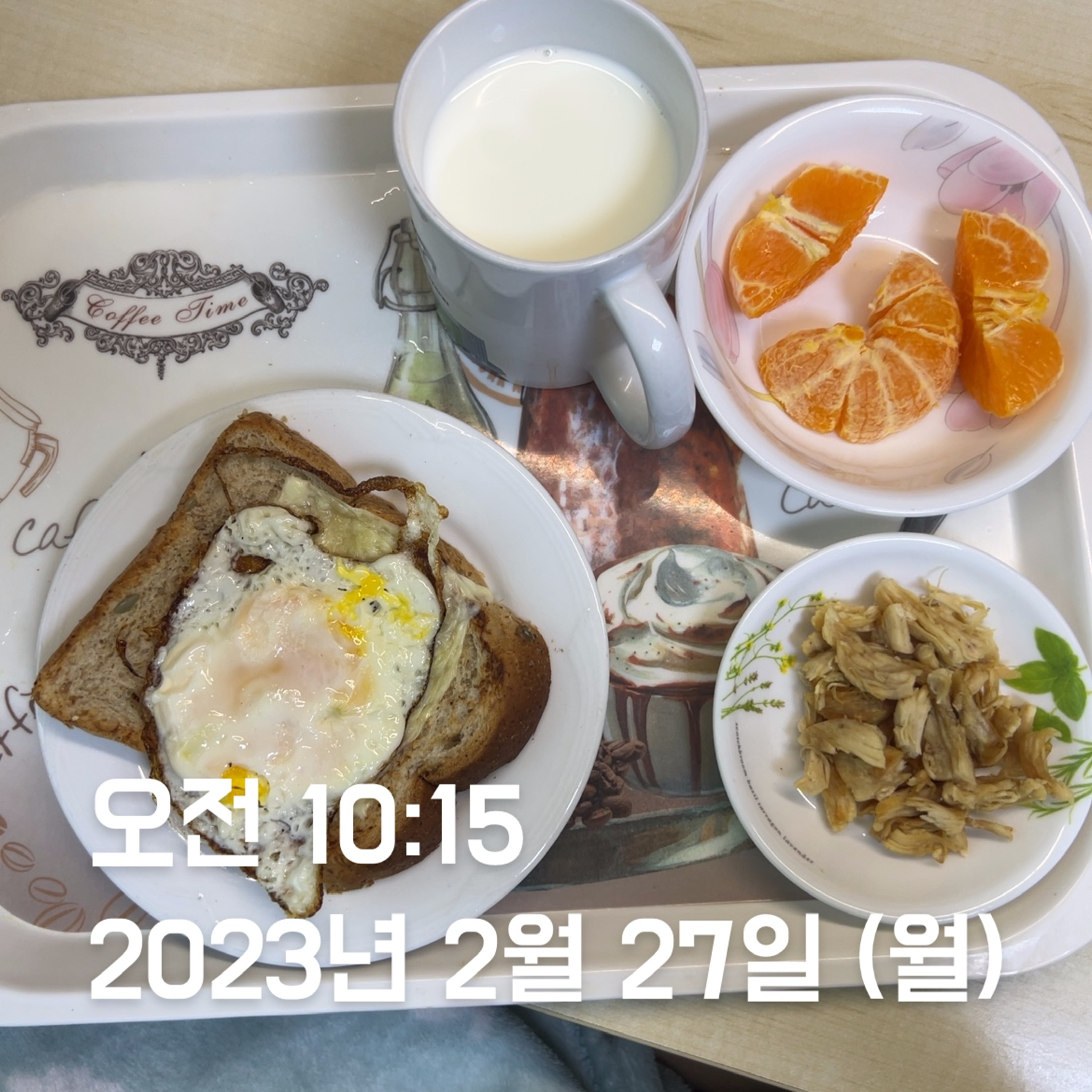 | 간식 | 계란 + 식혜 | 닭가슴살 | 오트밀 + 콘프레이크 | 말차, 밀크티 | 식빵 1/4 + 계란 1 + 닭가슴살 | 단백질 과자 | 크로플, 호떡, 천혜향 주스 |