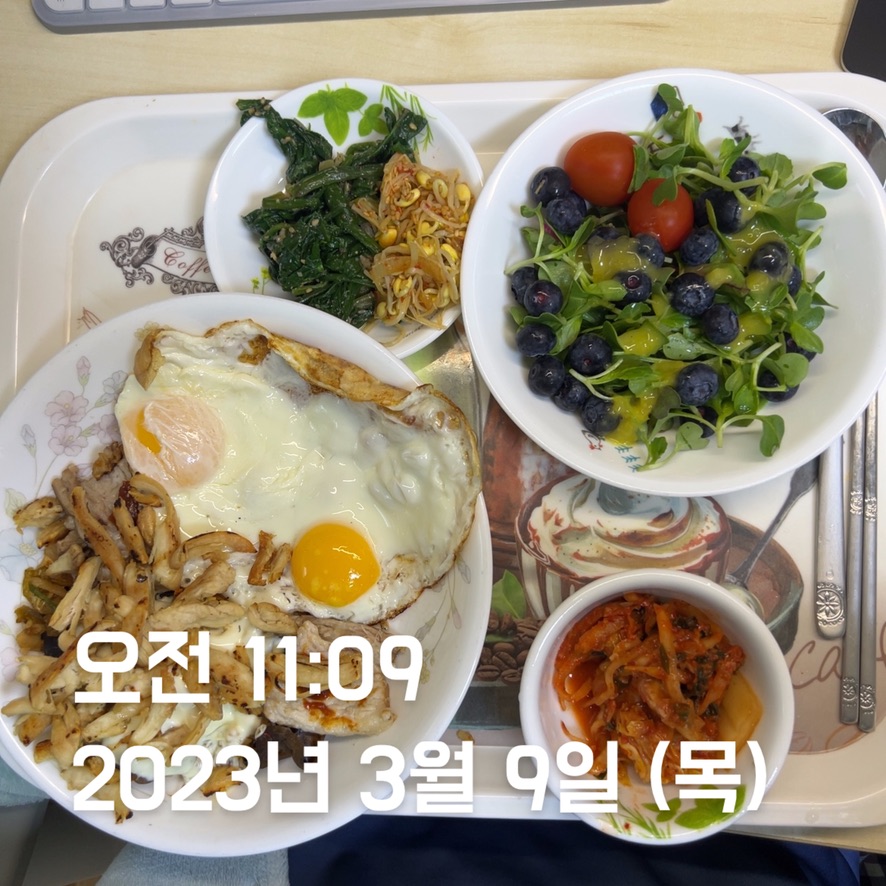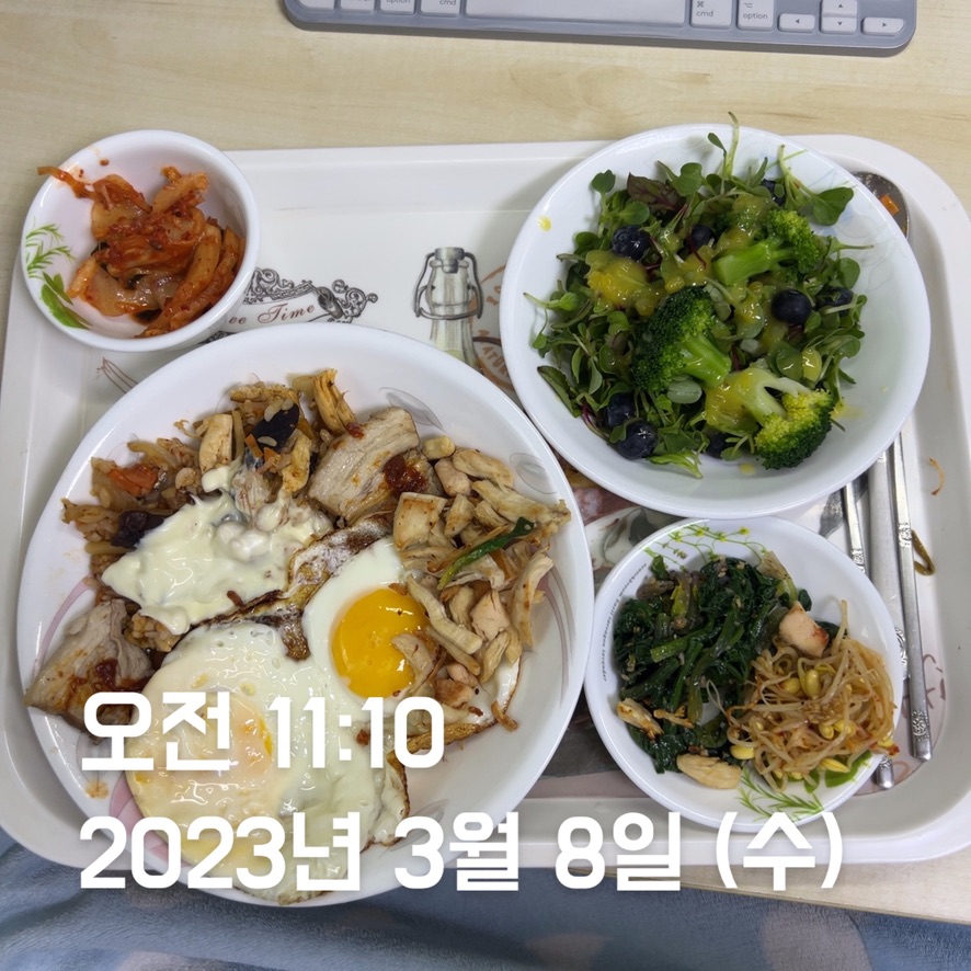 일 : ⭐️⭐️⭐️⭐️⭐️ - 오늘은 거의 모두 일반식으로 먹었다. 계란 및 닭가슴살 식단으로 약 2-3주가량 해보았더니, 큰 변화는 없었던 것 같다. 그래서, 앞으로는 너무 단백질을 고수하지 않고 일반식과 겸해서 먹을 예정이다. 아침과 점심은 일반식 1/2 + 단백질 식단 1/2으로 먹도록 하자. 그리고, 저녁과 밖에서 음식 먹을 때는 주어진 대로 먹자. 단, 과식은 금물