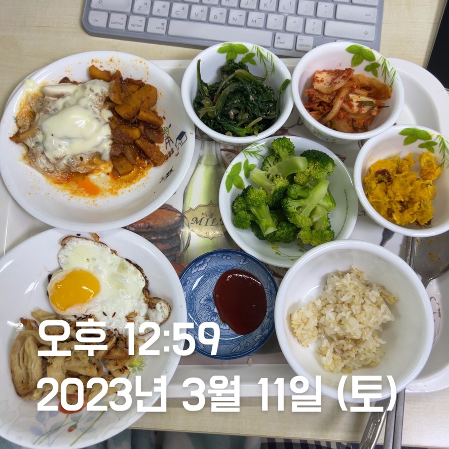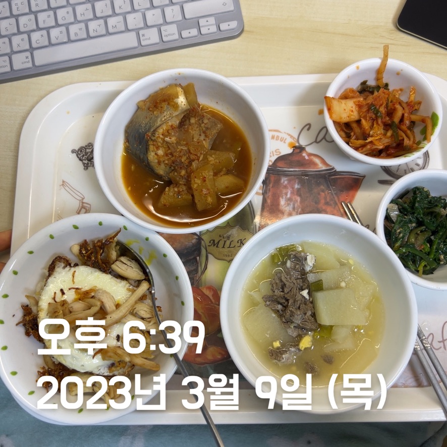 수 : ⭐️⭐️⭐️⭐️ - 등교 시간으로 인해 아침-점심 텀이 짧아서 바나나 + 우유를 먹었다. 좋은 선택이었다. 딱 1시간에 소화되는 양이었다. 수업 시간 때문에 5시 이른 시간에 저녁을 먹었는데, 밤에 배가 고플까 봐 밥 1 공기를 더 시켜서 과식을 했다 ㅜㅜ. 차라리, 집에 와서 뭐 더 주워 먹을 걸 그랬다. 한 번에 폭식은 금물인데.