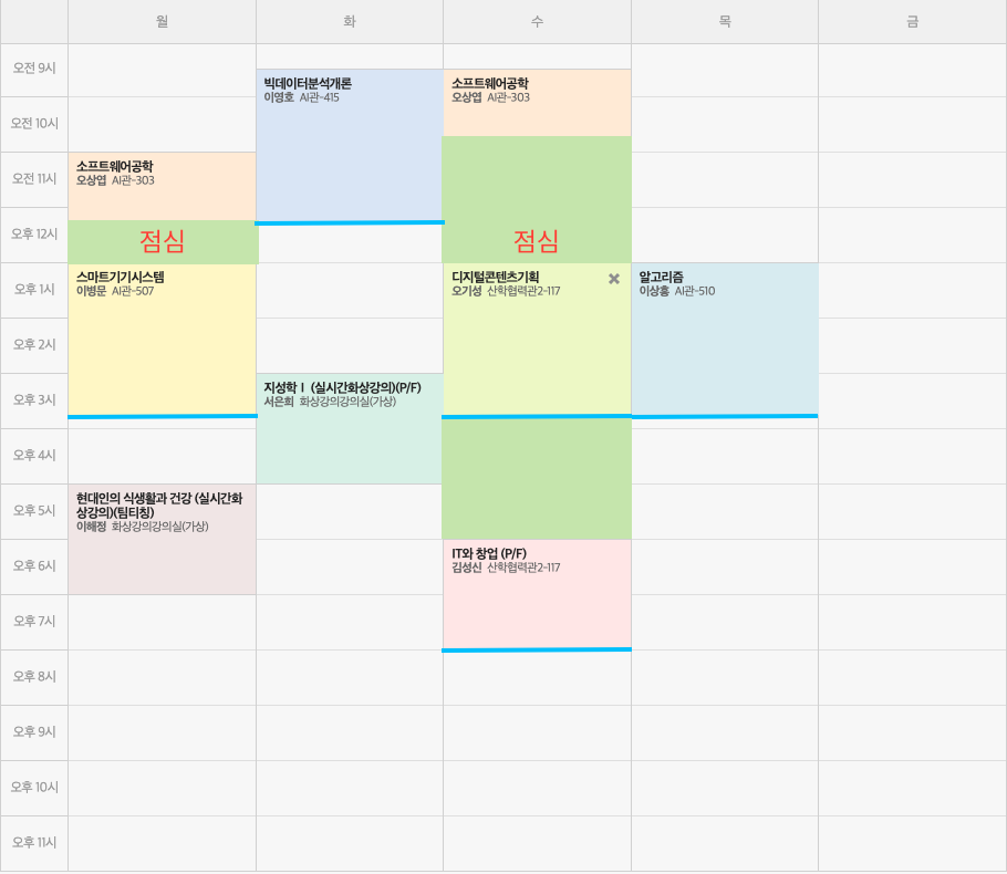 나의 이번 학기 시간표다.