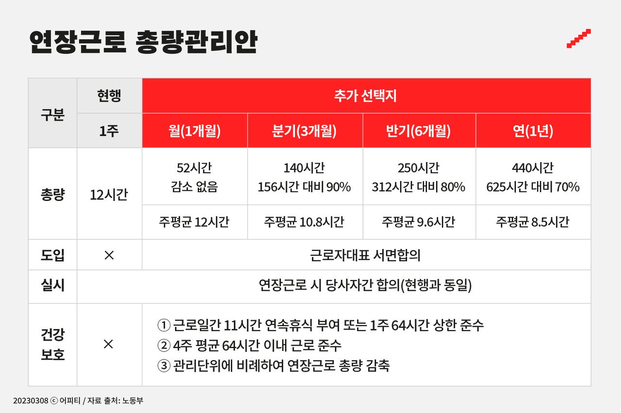 - 주 69시간 확정, 11시간 연속휴식은 삭제