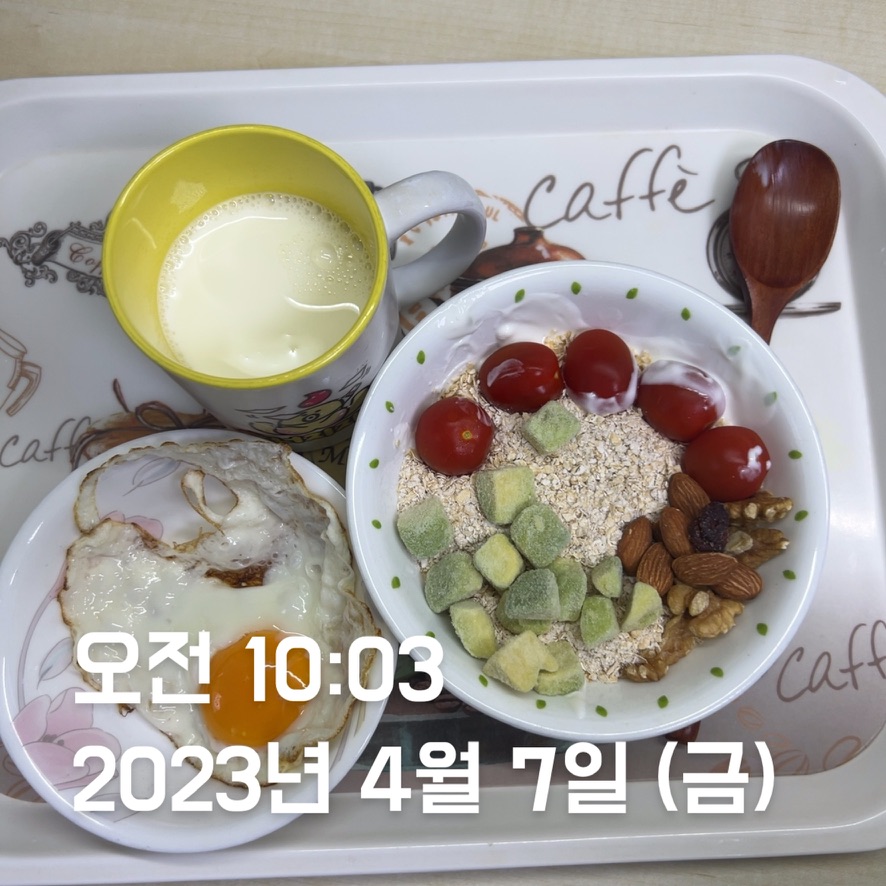월 : ⭐️⭐️⭐️⭐️⭐️ - 오늘 굿굿 ~ 바쁘지만 집에 와서 강의 전에 요거트까지 먹어줬다. 학식 때도 고기(단백질) 많이 받았다 ㅎ.