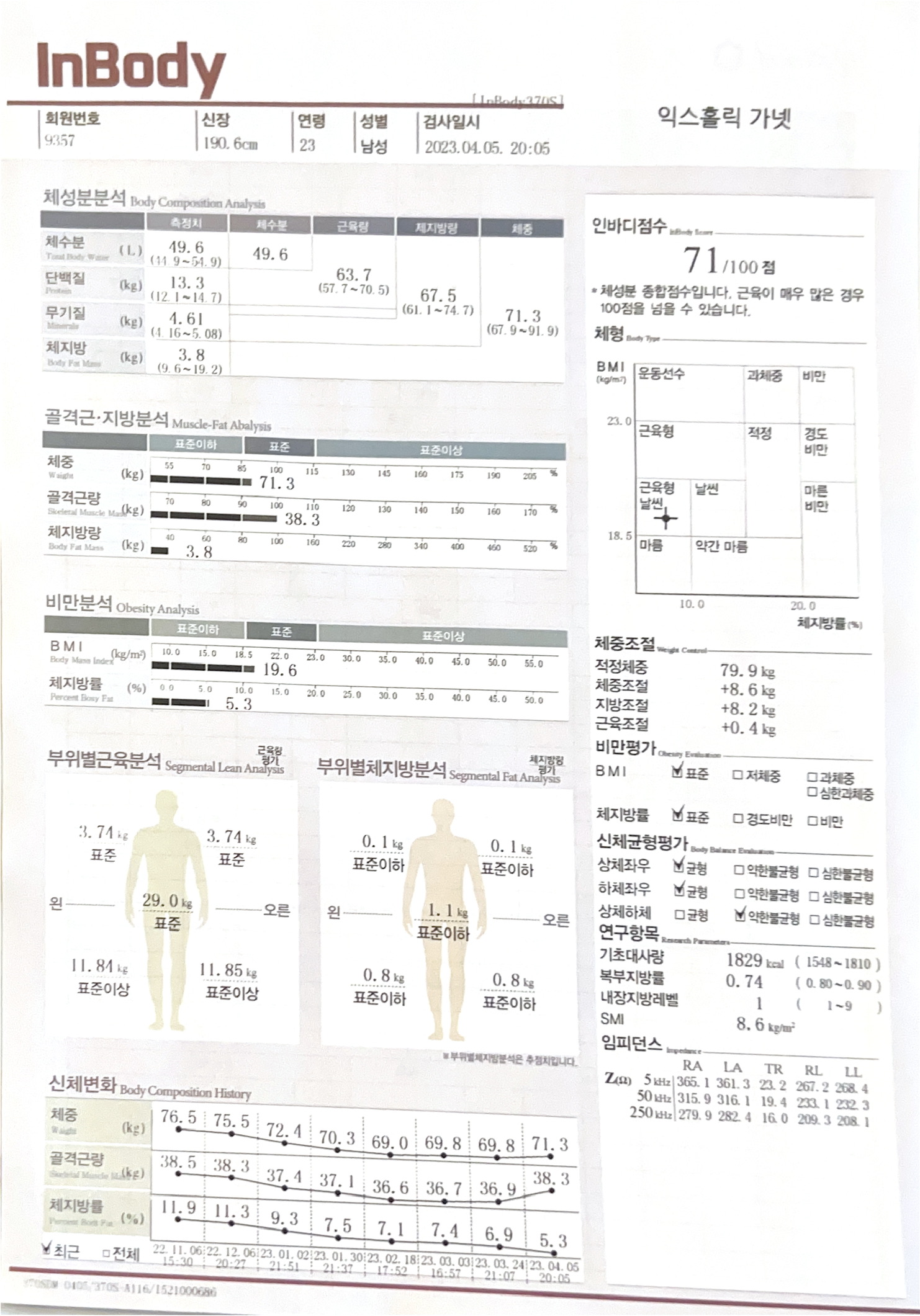 체지방이 무려 1% 감소하여 체지방률은 1.6% 감소했고, 골격근량은 1.4kg 증가, 체중은 1.5kg가 증가했다. 대박이다 대박.. 증가한 체중이 전부 근육으로 간 것이다. 내 식단관리가 정답이었나 보다. 점점 확신을 가지게 된다. 너무나도 뿌듯하고, 빛이 보인다.