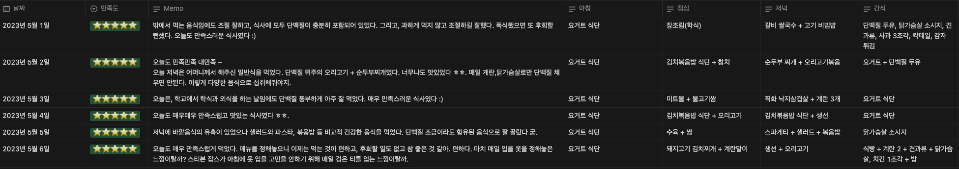 | [5월 2주차] 운동 & 식단 회고 (0) | 2023.05.14 |